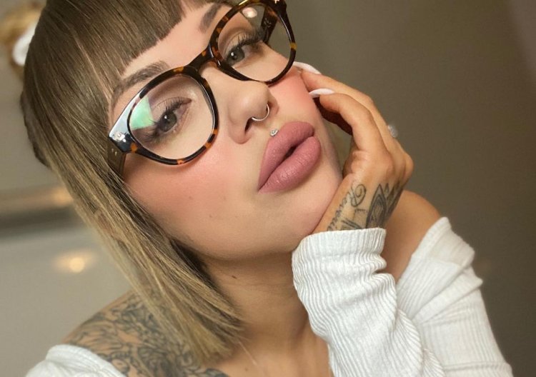 Girl with purple hair and tattoo