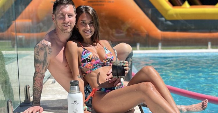 Photo: Antonella Rokuzzo and Lionel Messi on the beach