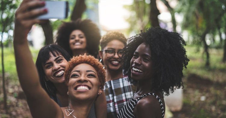 African American girlfriends laugh