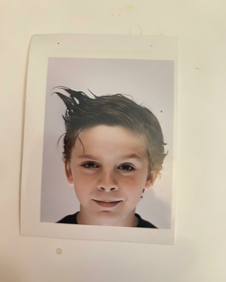 The girl's face is purple