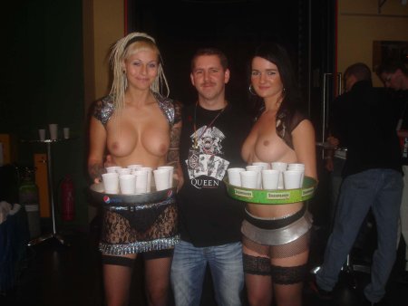 Waiters with naked breasts
