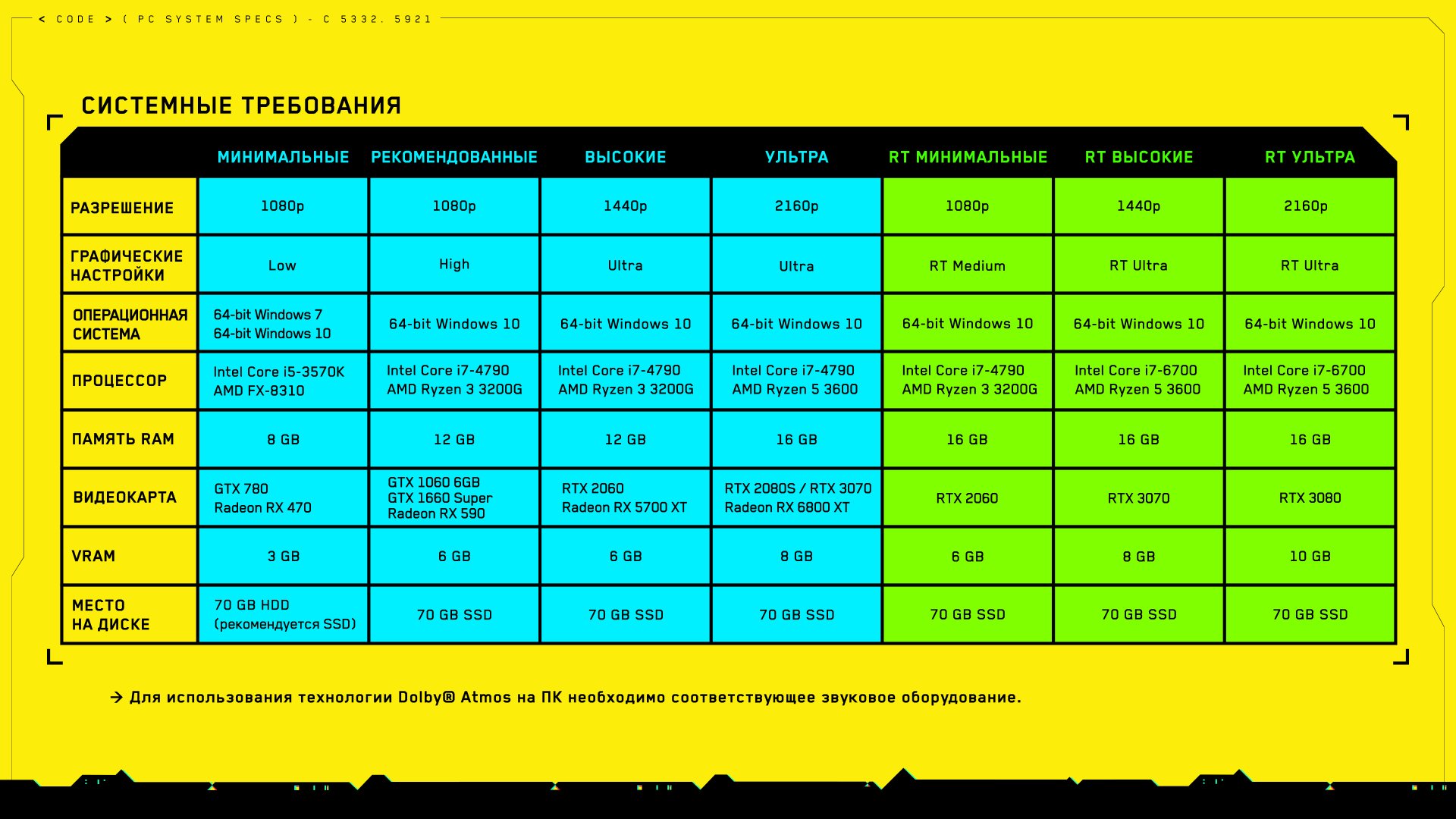 Minimum requirements Cyberpank 2077