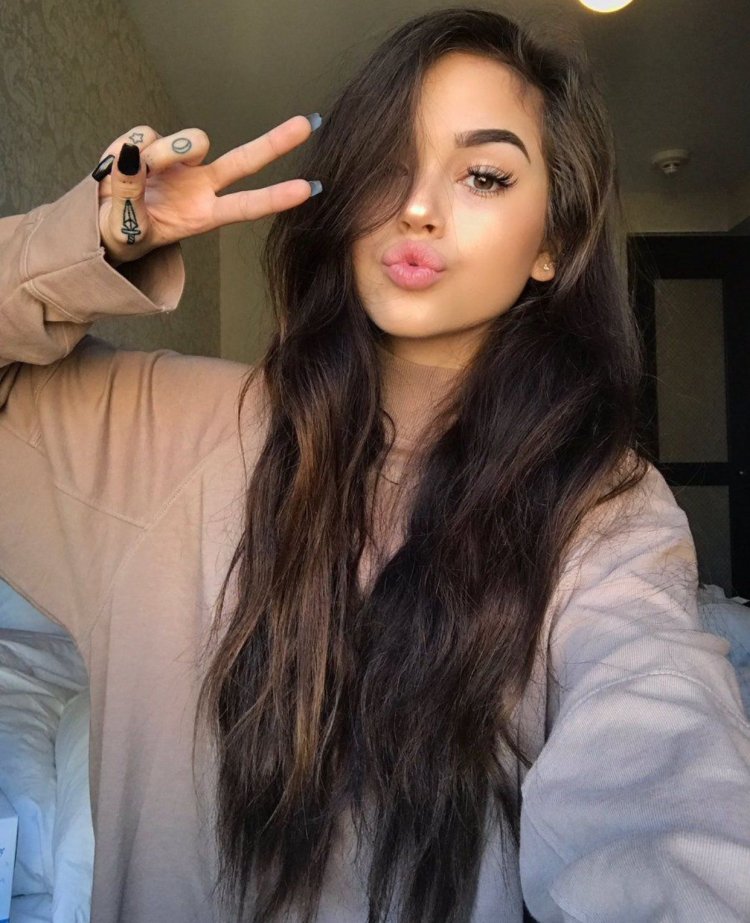 Selfies of brunettes with long hair