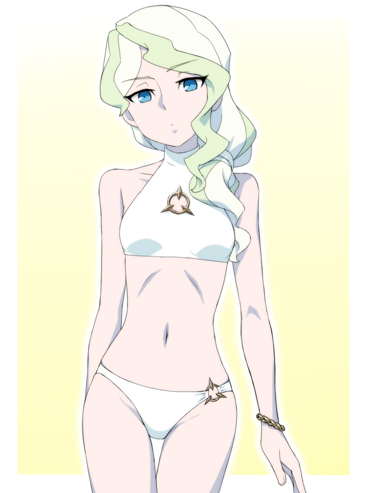 Girl in a swimsuit on a white background
