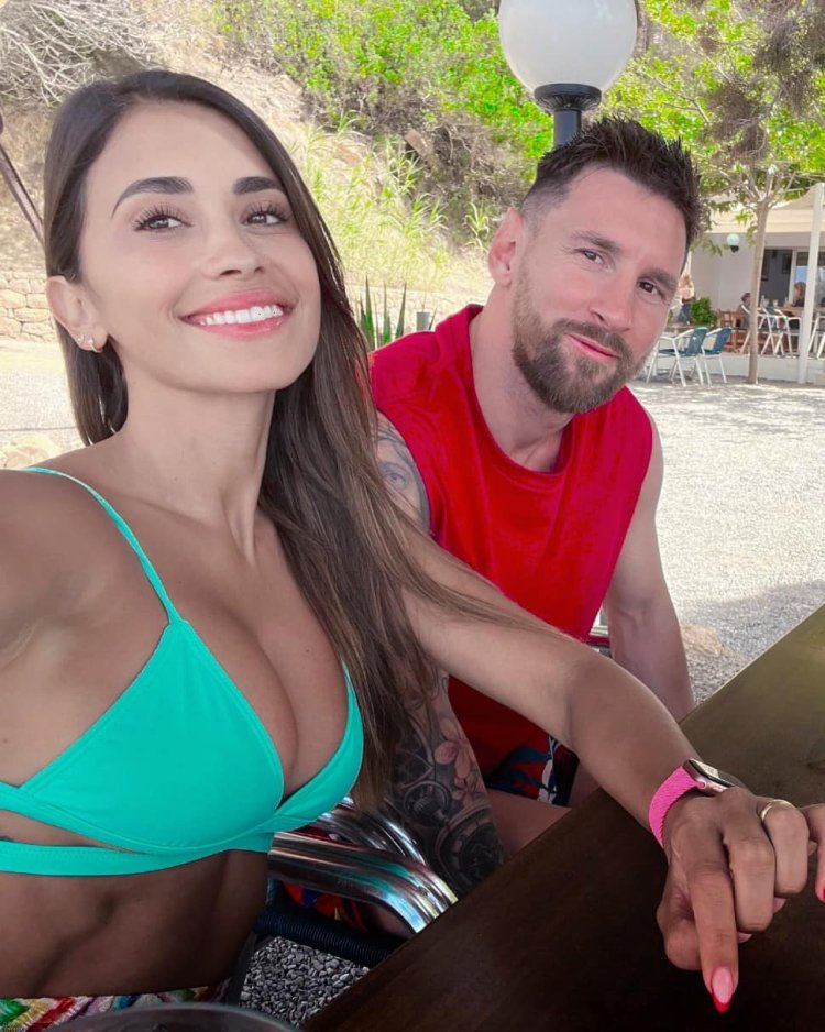 Lionel Messi and Antonella Roccuzzo in a swimsuit