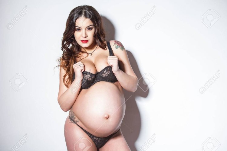 Photo shoot of pregnant women in lingerie